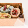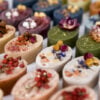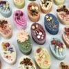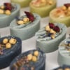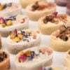 Oval mini soaps are a tiny version of our full size bar, all decorated with a textured top, various botanicals, biodegradable glitter and more. As they are created using leftover soap mix or when trialing new fragrances, therefore designs and scents will change continuously – please use the image as reference for size and possible designs only. Our minis are very popular and make a great tiny gift or you can have them packaged in a small kraft box as a set of three. They are also part of the Little something – micro gift pack.