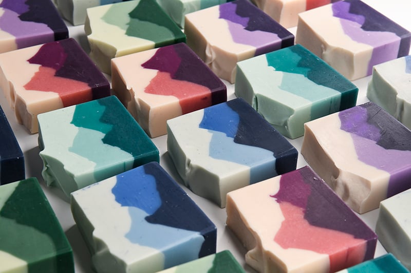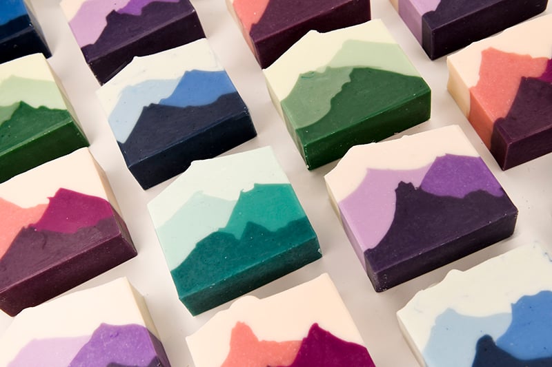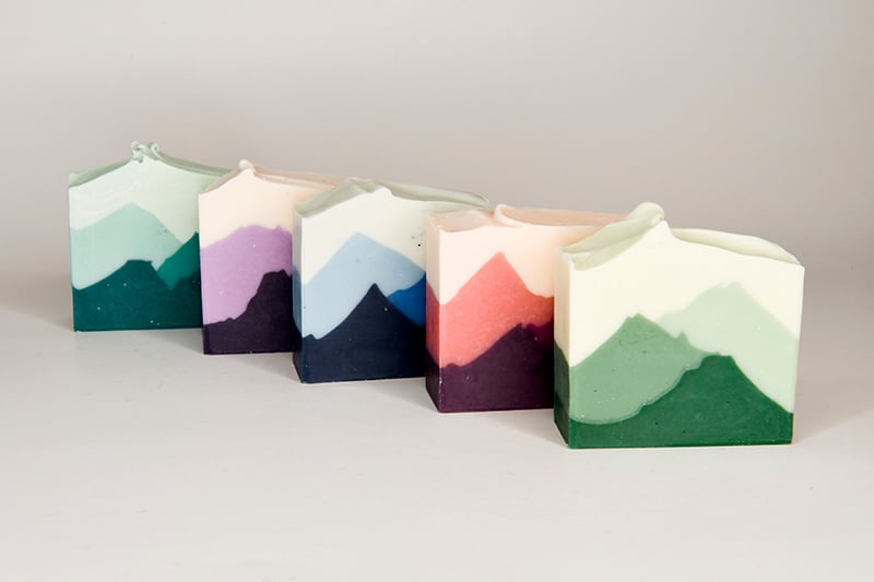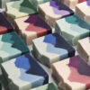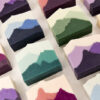 Mountain ranges soaps is a series of soaps with a mountain motif in various colours. They were made in our landscape aspect mini moulds, but cut thicker than our usual bar soaps and are a delight to look at. They were part of our most recent exhibition with the theme ‘A colour story’ and we took inspiration with the colour schemes from many amazing photographs featuring hazy mountains in the distance. They are all scented with chamomile & grapefruit fragrance, a very popular and strong fragrance with zesty citrus notes, that are layered with floral hints and leafy green notes. Currently there are five colours available and can be selected from the dropdown menu.
