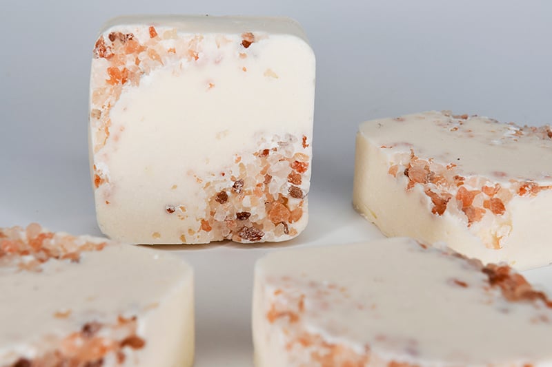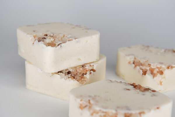 Salt bars may help soothe skin problems like eczema, dermatitis and psoriasis due to soap containing sea salt (similar to a swim in the ocean) – however they are in no way a promised cure or a medicinal product. Salt bars are great to clean dirty hands after a day in the garden for example due to the cleaning power of coconut oil, which the main ingredient. They are made with a very high percentage of superfat to ensure they are very gentle on the skin. The salt is exfoliating. Salt & clay bars are also an ideal body soap to be used in the bath or shower.