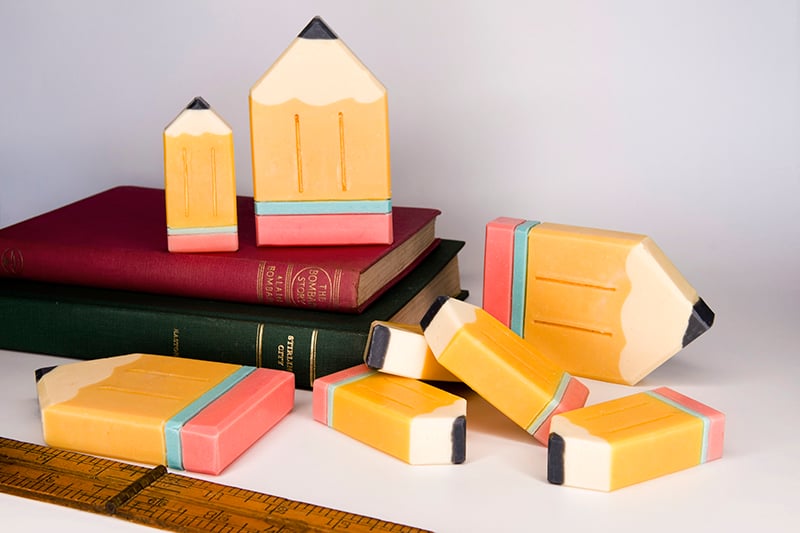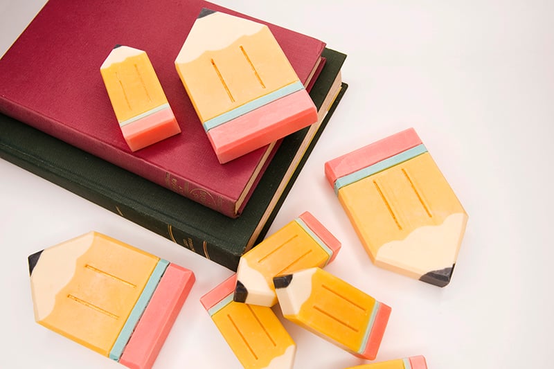 We now offer little gift packs for teacher’s gifts that include the mini pencils and apple shaped shower steamers – check this out here. The latest addition is a book shaped soap and little gift sets containing them are also available via this link.